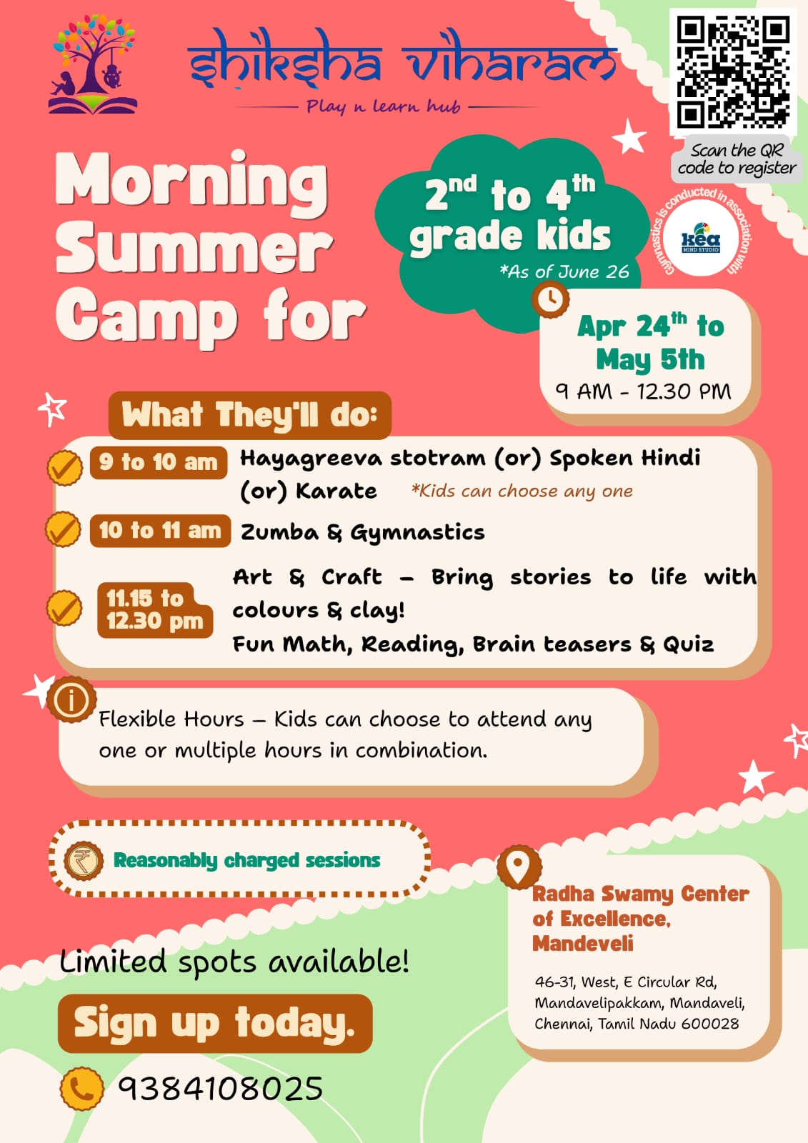Summer Camp Samskar 2025: Decode Success formulae, summer fun with a learning twist. What you learn? Playful Yoga Gymnastics Mindful Art Soulful Bhajans Group Discussions Concentration & Confidence Indian Traditional…
